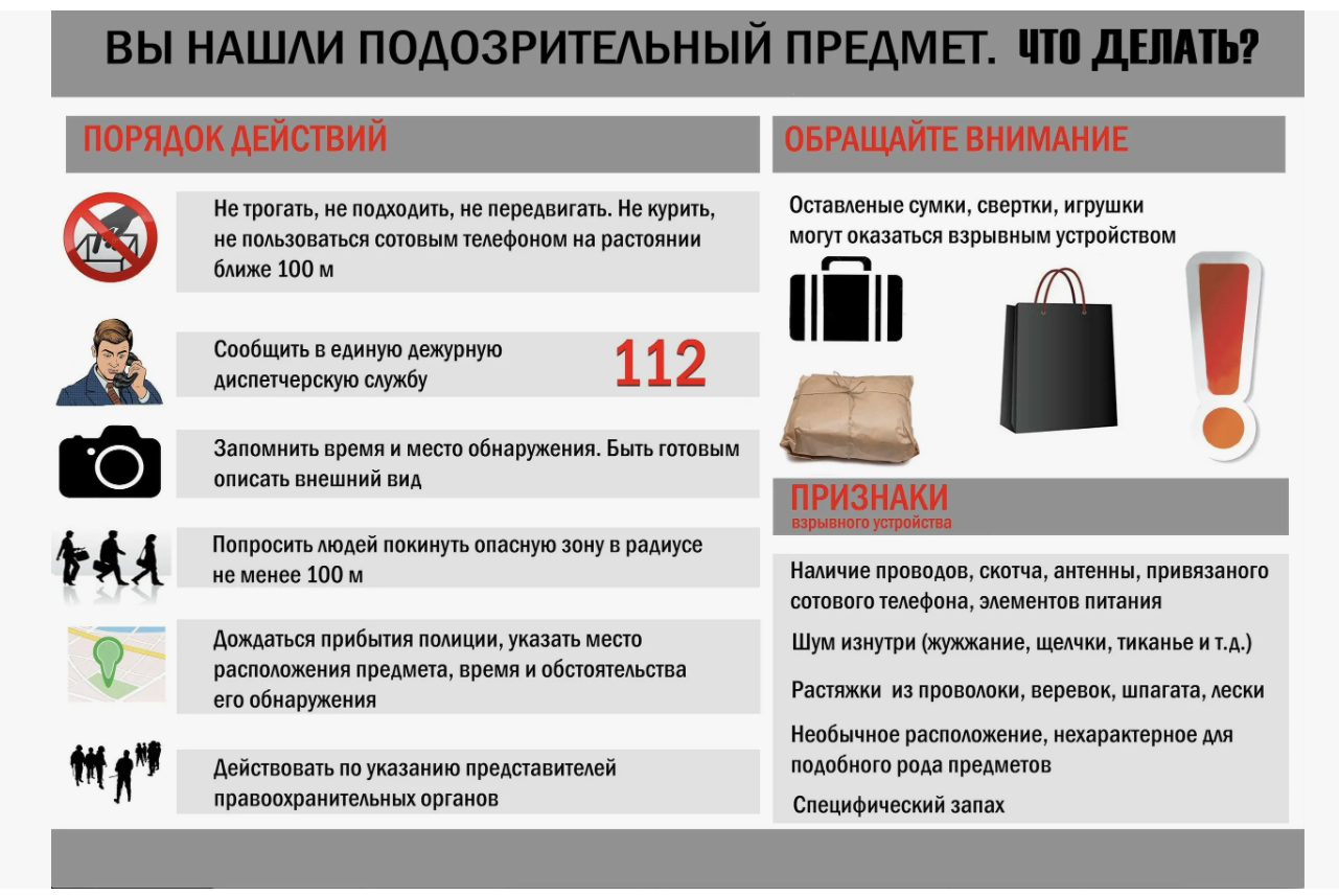 Читать подробнееДействия при обнаружении подозрительного предмета.