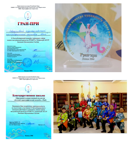 Читать подробнееПоздравляем Образцовый художественный хореографический ансамбль «Май» получением Гран-при II Республиканского конкурса тувинского танца имени заслуженной артистки РСФСР и Тувинской АССР Е.М.Салчак.